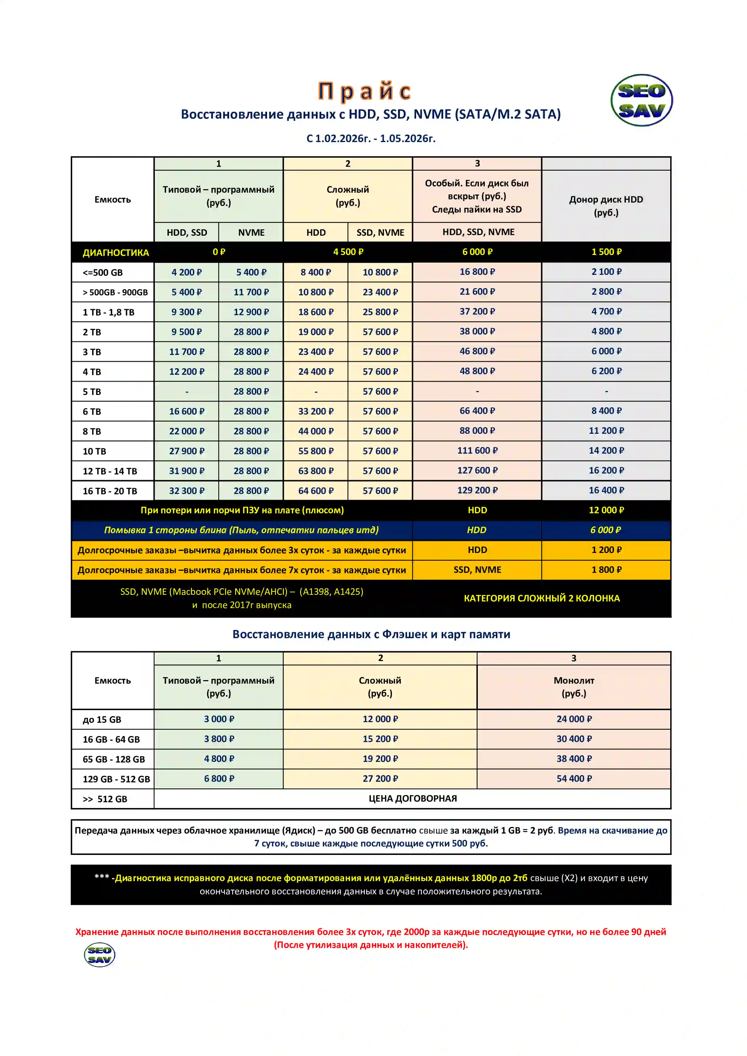 Восстанавливаем данные с (HDD, SSD, NVME, USB-Флэш, SD-карт, MicroSD) в короткие сроки.